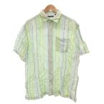 キューバベラ CUBAVERA シャツ 麻 リネン L 青 ブルー 黄緑 ストライプ柄 半袖 レギュラーカラー /KB ■GY59 メンズ