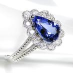 pt900 プラチナ ダイヤモンド ダイヤ 指輪 リング カラーストーン タンザナイト ミル打ち 雫 大粒 FYR0147