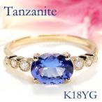 リング タンザナイト レディース 指輪 18金 18k K18 ゴールド ゾイサイト ダイヤモンド 4.0mm×6.0mm