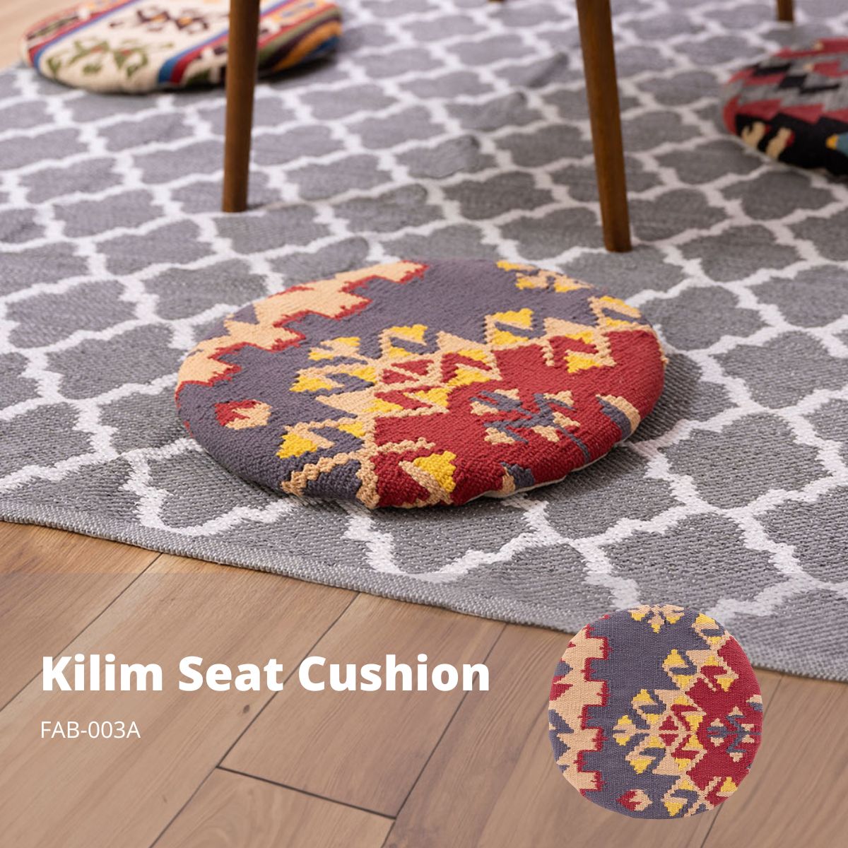 東谷 キリム シートクッション FAB-003A 【完成品】【代引き不可】【北海道・沖縄・離島配送不可】 クッション キリム オルテガ デザインクッション 柄 模様 椅子用 椅子用クッション おしゃれ コットン 座布団 キリムクッション シートクッション