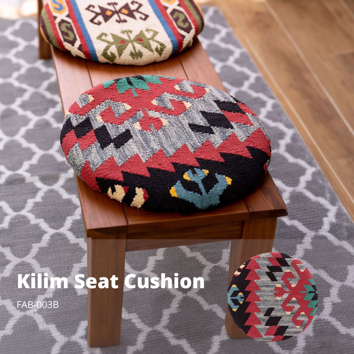 東谷 キリム シートクッション FAB-003B 【完成品】【代引き不可】【北海道・沖縄・離島配送不可】 クッション キリム オルテガ デザインクッション 柄 模様 椅子用 椅子用クッション おしゃれ コットン 座布団 キリムクッション シートクッション