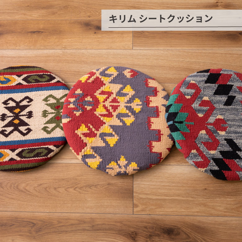 キリム シートクッション クッション キリム オルテガ デザインクッション 柄 模様 椅子用 椅子用クッション おしゃれ コットン 座布団 キリムクッション シートクッション