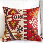 【15%OFFクーポン対象】オールドキリムクッションカバー45cm Turkish Kilim Cushionトルコのウール手織りキリム パッチワーク