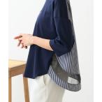 tシャツ ラウンドキリカエストライププルオーバー レディース