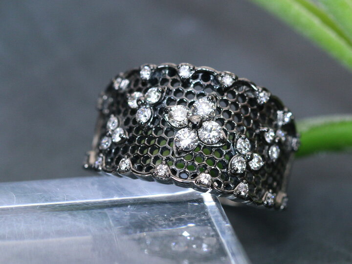 【スーパーセール限定!20%OFFで242000円から193600円に!】ダイヤモンド0.5ct 細やかレース仕上がり K18WGホワイトゴールドにブラックメッキ リング 指輪 程よい幅広 受注品/送料無料