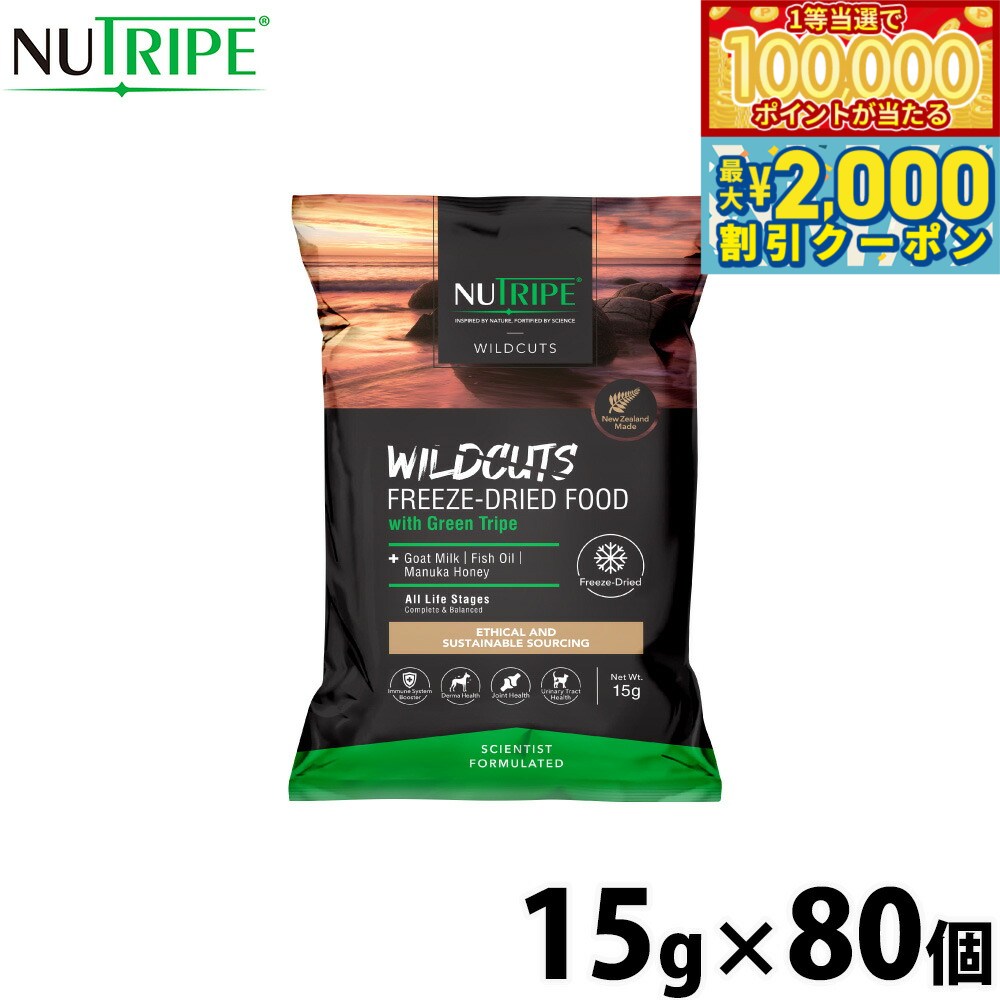 倍々+5倍!最大ポイント30倍!本日限定!ニュートライプ キャットフード ワイルドカット フリーズドライ フィッシュ&ラムwithグリーントライプ 15g×80