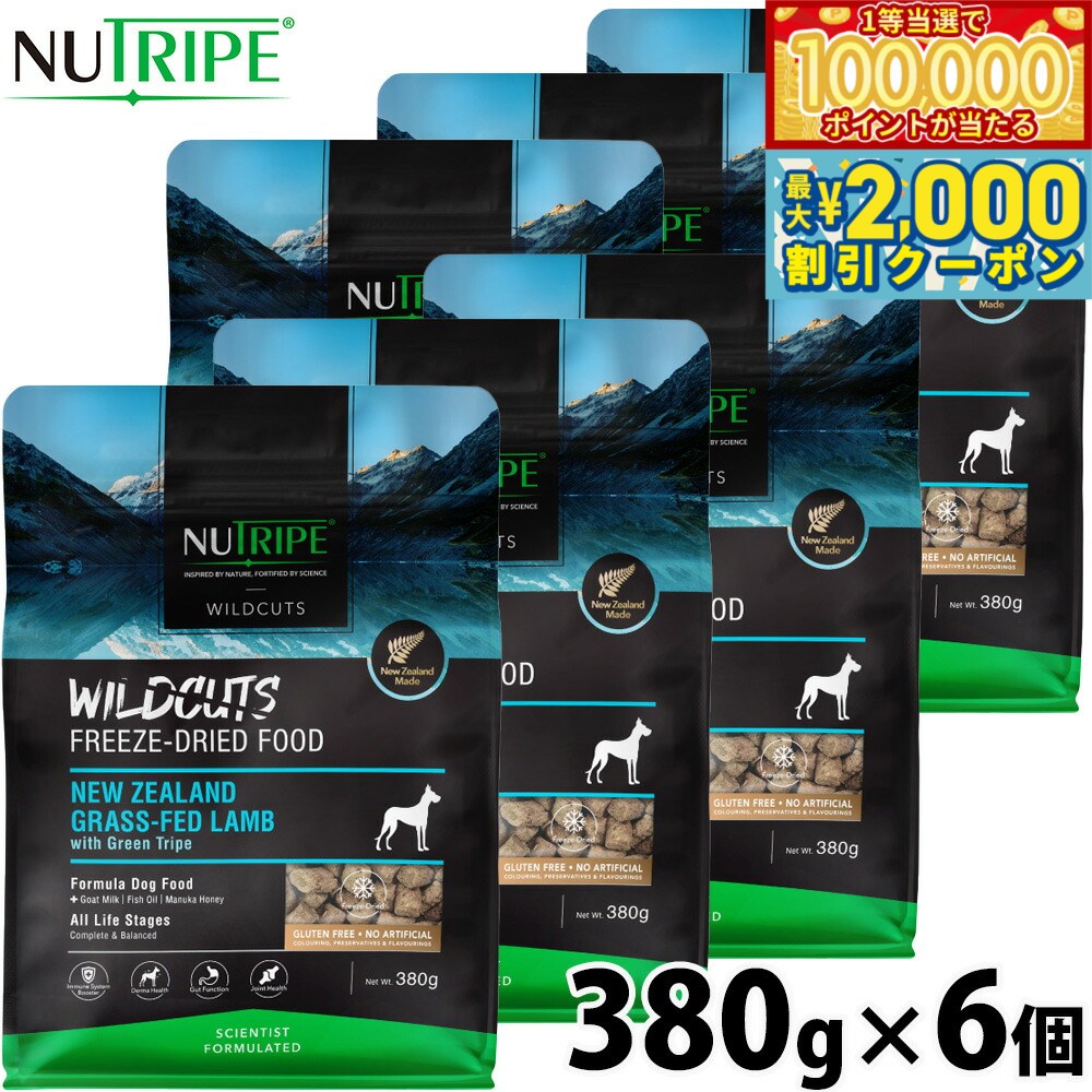 ニュートライプ ドッグ ワイルドカット フリーズドライ キングサーモン&ラムwithグリーントライプ 380g ×6個セット 「ファンタジーワールド」