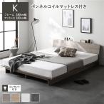 ベッド キングベッド キング ベット マットレスセット 収納 棚 コンセント すのこ 宮付 グレー ブラウン 白 黒 おしゃれ マットレス付 キング プエル