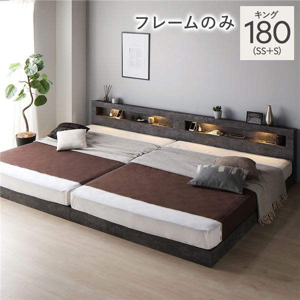 ベッド キング 180 SS+S ベッドフレームのみ ストーングレー 連結 低床 照明 コンセント 宮付 宮棚付 棚付 すのこ ロータイプ 頑丈 連結ベッド ベッドフレーム ローベッド すのこベッド フロアベッド 寝具 キングベッド
