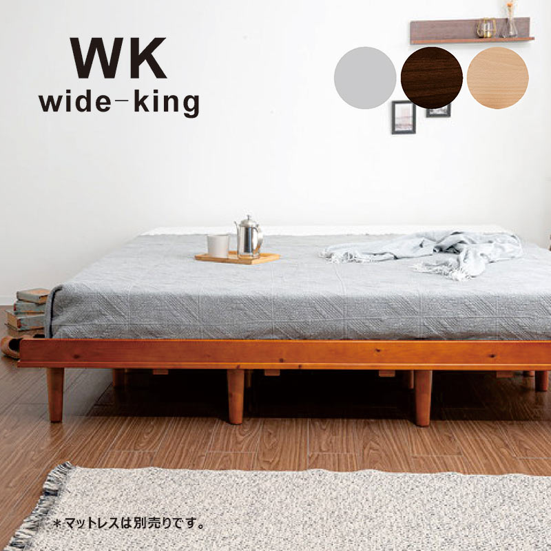 キングサイズ ベッド フレーム キングベッド スノコ すのこ キング ワイド 200 天然 パイン 無垢 ベッドフレームのみ 通気性 ステージベッド フロアベッド ローベッド 収納 棚 頑丈 丈夫 おしゃれ 北欧 木製 脚付き キズ防止 ベット 寝室 子供部屋 家族 ファミリー 新生活