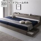 (タイムセール中) ワイドキングサイズベッド 2台セット WK200(S+S) ベッドフレームのみ ローベッド すのこ 照明コンセント宮棚付き