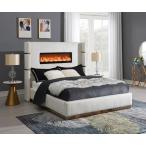 【並行輸入品】First of a Kind ベルベットキングベッド 暖炉ヘッドボード付き布張りのウィングバックフレーム USBポート、