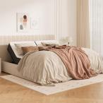 【並行輸入品】キングサイズ 厚底ベッド 特大パッド入りヘッドボード付き 無垢材フレーム & ボックススプリング不要 布張り ベッドフレーム マッ