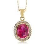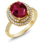 【並行輸入品】[Gem Stone King] 4.4カラット シンセティック ルビー ネックレス レディース シルバー925 18金 イエロー