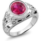 【並行輸入品】[Gem Stone King] 6.40カラット シンセティック ルビー 指輪 リング メンズ シルバー925 7月 誕生石