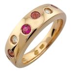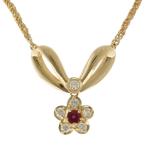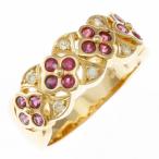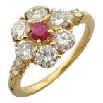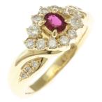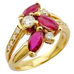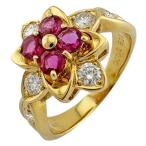 リング 指輪 15号 花 フラワー 18金 K18イエローゴールド ルビー ダイヤモンド 中古 美品