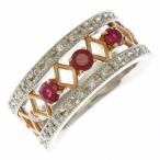 リング 指輪 14号 透かし ミルグレイン 幅広 Pt900プラチナ K18ピンクゴールド ルビー 0.60ct ダイヤモンド 0.28ct レディース 中古 美品
