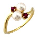 リング 指輪 12号 18金 K18イエローゴールド パール ルビー レディース 中古 美品