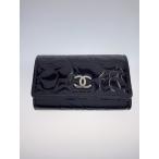 CHANEL◆キーケース/パテントレザー/BLK/無地/レディース/カメリア/
