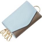 キーケース レディース 本革 スマートキー カードケース 札入れ( グレイッシュブルー/トープ)