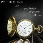 ウォルサム 1904年 アンティーク ホワイトポーセリン キーストーン社 18K YG ハンターケース 手巻 懐中時計 HKPW58