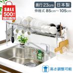 27日10時迄SALE 水切りラック シンク上 幅 伸縮 1段 奥行23cm スリム ステンレス 水切りかご おしゃれ まな板 収納 ホルダー 燕三条 日本製 22420 川口工器 爆買