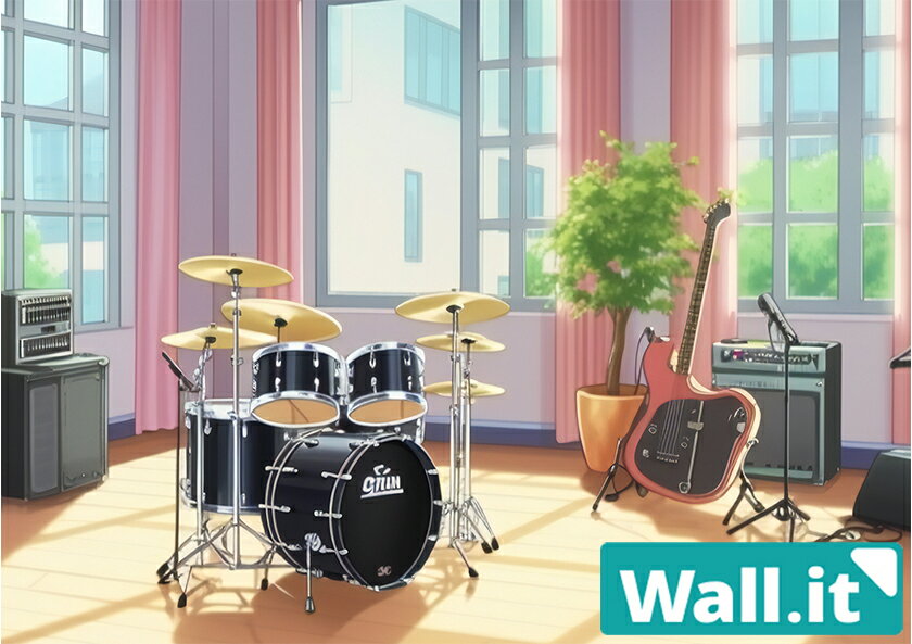 【15日★120枚★全品5%OFFクーポン 】 【Wall.it A4 フィギュアディスプレイケース専用背面デザインシート 縦向】 軽音 音楽部 部室 学校 教室 リビング 楽器 ドラム ギター ベース けいおん