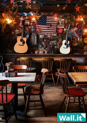 【15日★100枚★全品10%OFFクーポン】 【Wall.it A4 フィギュアディスプレイケース専用背面デザインシート 縦向】 USA ロックカフェ ギター ヴィンテージ 店内 風景 アメリカ 喫茶店 酒場