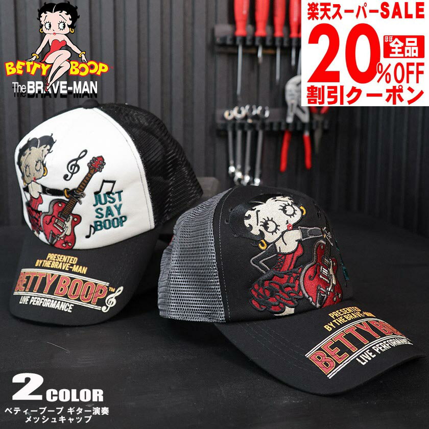 【告知!楽天スーパーSALE 割引20%OFFクーポン!】Betty Boop ベティーちゃん キャップ メンズ メッシュキャップ オシャレ ギター 刺繍 帽子 ユニセックス ベティー コラボ ブレイブマン bbb-2525