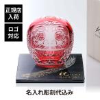 KAGAMI カガミクリスタル 江戸切子 祝だるま(大)・伊と幸 シルクガラス 台座 黒染金彩墨描 20×20cm セット 名入れ代込 名入れ ギフト 祝い 記念品 受賞