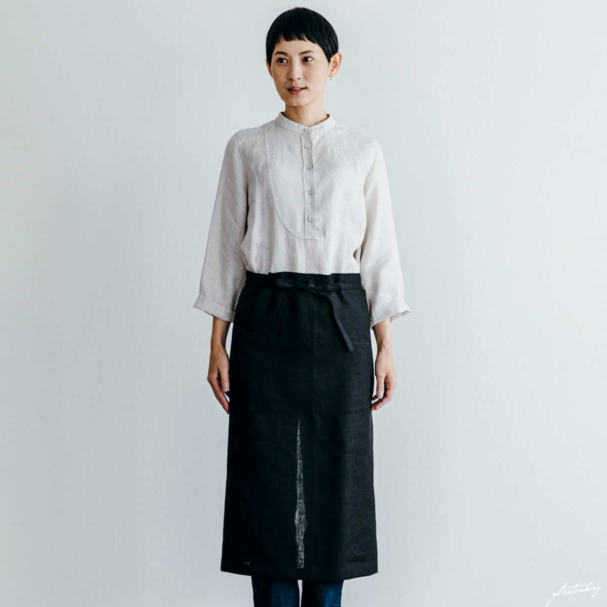 (fog linen work)リネンギャルソンエプロン ブラック(フォグリネンワーク)