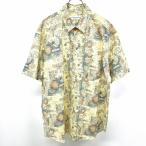 ギラロッシュ Guy Laroche 薄手 シャツ 総柄 イラスト 天文 太陽 星 ボタンダウン 半袖 綿100% XL (4) 黄色×青×オレンジ 黄色 メンズ