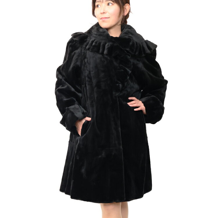 ギラロッシュ Guy Laroche SAGA MINK ROYAL サガミンク 金サガ ロイヤル ミンクファー コート アウター 毛皮 ミドル F 黒 ブラック