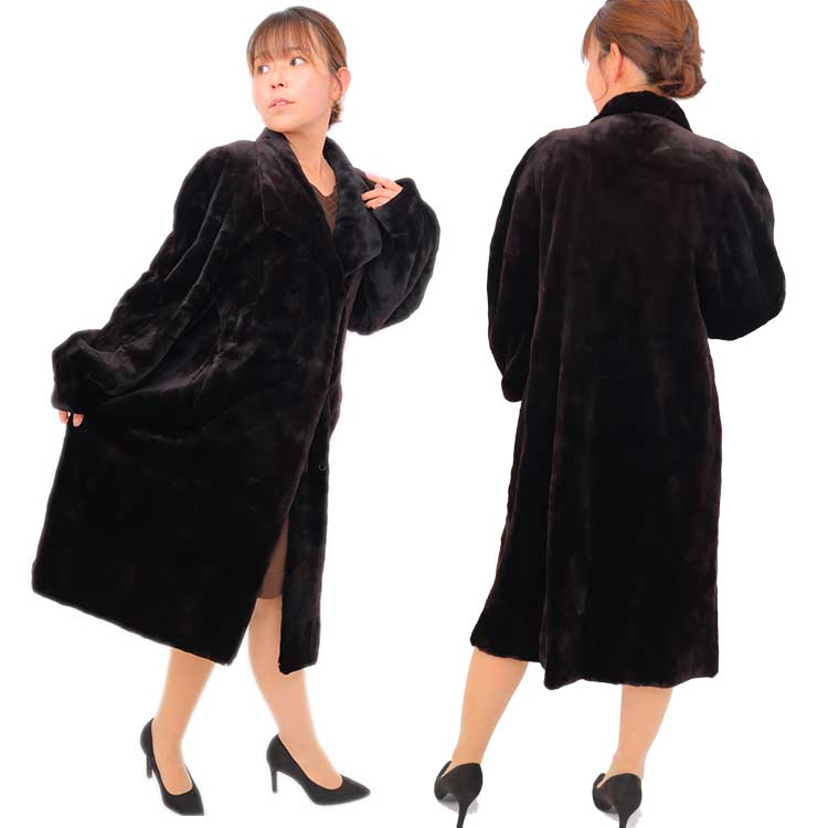 ギラロッシュ Guy Laroche Paris 毛皮コート ロング丈 ファー シェアードミンク 黒 ブラック F レディース