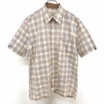 ギラロッシュ Guy Laroche シャツ 半袖 パフスリーブ チェック 袖口スリット 胸ポケット 綿100% M マルチカラー 茶×黄×紫×白 メンズ