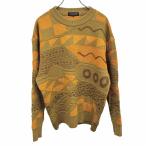 ギラロッシュ Guy Laroche セーター ジャカード 総柄 長袖 丸首 ウール×アクリル×レーヨン M グリーン 緑×茶 (ラメ糸:ゴールド) メンズ