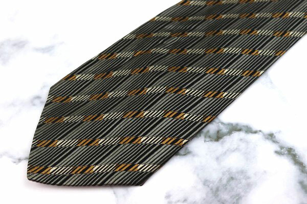 ギラロッシュ Guy Laroche ストライプ柄 グレー シルク ブランド ネクタイ 送料無料 【中古】【美品】
