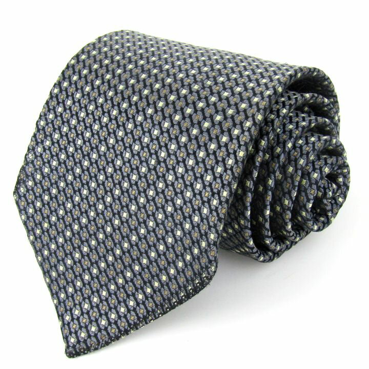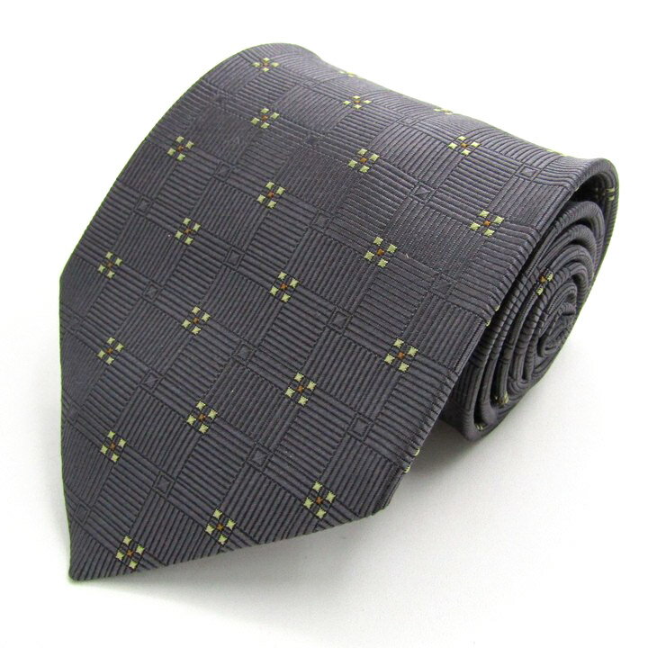 ギラロッシュ ブランド ネクタイ シルク 格子柄 小紋柄 総柄 未使用品タグ付 PO メンズ グレー GuyLaroche 【中古】