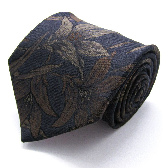ギラロッシュ ブランド ネクタイ 総柄 花柄 リーフ柄 シルク PO メンズ ネイビー GuyLaroche 【中古】