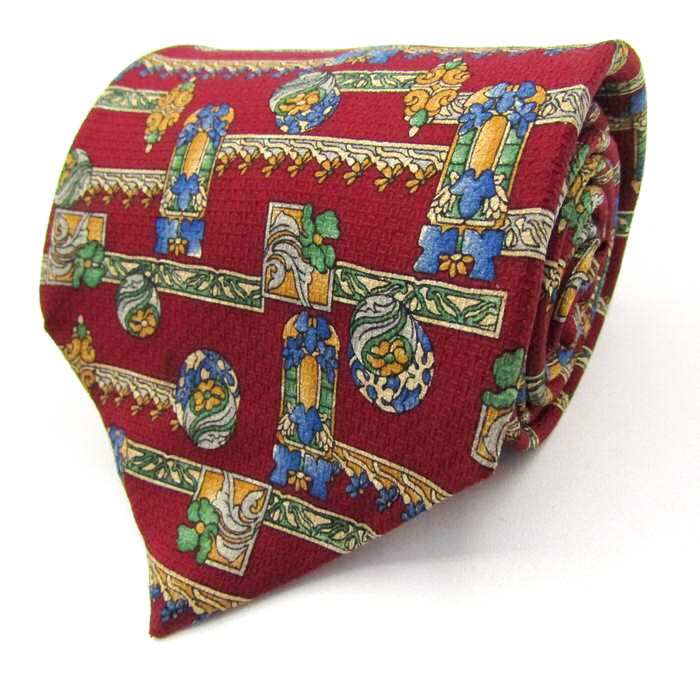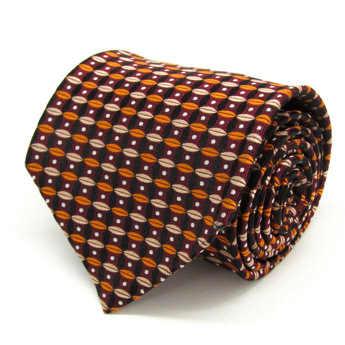 ギラロッシュ ブランド ネクタイ 総柄 花柄 幾何学模様 シルク カナダ製 PO メンズ ワインレッド Guy Laroche 【中古】