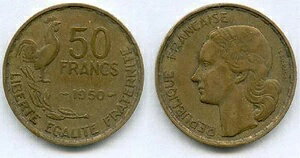 フランス 1950 年、ギロー、50 フラン レア コイン