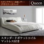 クイーンベッド 高級レザーベッド ホワイト 白 デザイナーズベッド レザーベッド 大型ベッド クイーン スタンダードポケットコイルマットレス付き