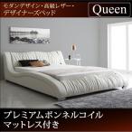 クイーンベッド 高級レザーベッド ホワイト 白 デザイナーズベッド レザーベッド 大型ベッド クイーン プレミアムボンネルコイルマットレス付き