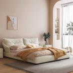 【並行輸入品】HONGYISHI 軽量 ラグジュアリー レザー クイーンサイズ プラットフォーム ベッド キングサイズ 布張りプラットフォーム