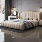 【並行輸入品】DLCQIJI モダンライトラグジュアリーレザークイーンベッドフレーム、人間工学に基づいた布張りのヘッドボード収納木製スラットサポ