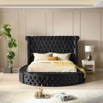 【並行輸入品】キツツキ 家具とマットレス WPfurniture エリザベスコレクション 布張り ラウンド 収納 クイーンベッド (ブラック)
