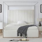 【並行輸入品】キツツキ 家具とマットレス ジェフリーキャノピー ビーガンレザー 布張り ベッドフレーム (クリーム、クイーン) Woodpeck