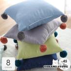 クッションカバー カバーのみ 北欧 45×45cm おしゃれ シンプル サテン 高級感 ポンポン ブルー グリーン ブラウン オレンジ パープルクラシック