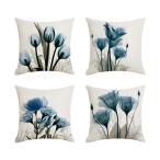 【並行輸入品】リネンスプリング枕カバー 4枚セット 18x18 フローラルプリント、正方形装飾クッションカバー カウチ ソファ ベッドルーム ホ