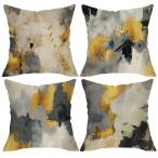 【並行輸入品】Fjfz ゴールドグレー 抽象的装飾クッションカバー 18×18インチ 4枚セット モダンアート 絵画 コンテンポラリー ポーチ